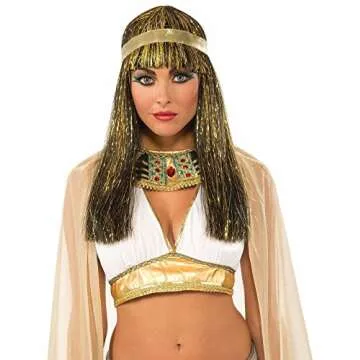 Forum Novelties 75128 Cleopatra Black with Gold Tinsel Wig, One Size, Black & Gold
