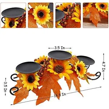 FORUP Harvest Centerpiece, Thanksgiving Candle Holders, Thanksgiving Tabletop Sunflower Centerpiece with 3 Candle Holders, Metal Maple Leaf Candleholder for Home Party Thanksgiving Mantel Decorations