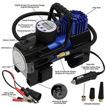 FORUP Heavy Duty Portable Air Compressor Pump, 12V DC Tire Car, SUV, Bicycle and Other Inflatables (Single Cylinder)