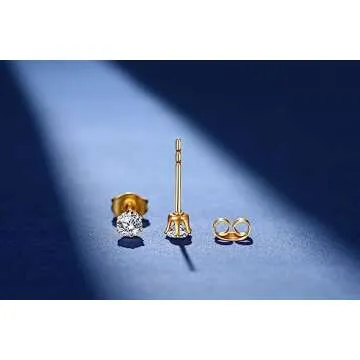 FOSIR 6 Pairs Tiny 14K Gold Plated Stainless Steel Round Clear Cubic Zirconia Stud Earrings for Women (2mm 3mm 4mm CZ, 14K Gold)