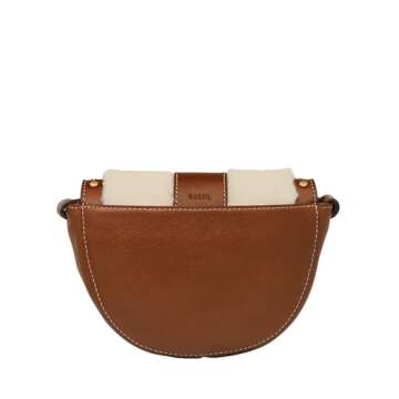 Fossil Harwell Small Crossbody, Medium Brown Shearling/Stud Flap