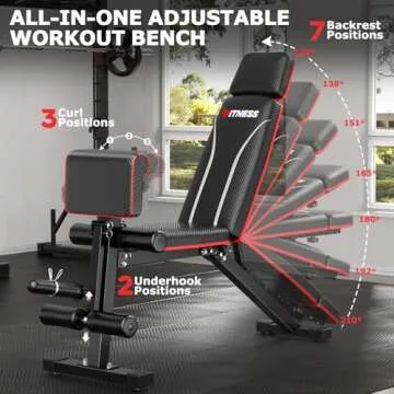Fostoy Foldable Workout Bench, Adjustable Weight Bench for Home Gym, Multi Functional Gym Bench w/Leg Extension &Preacher Pad, Extra Headrest, Fast Folding Strength Training Incline Sit up Bench 800LB