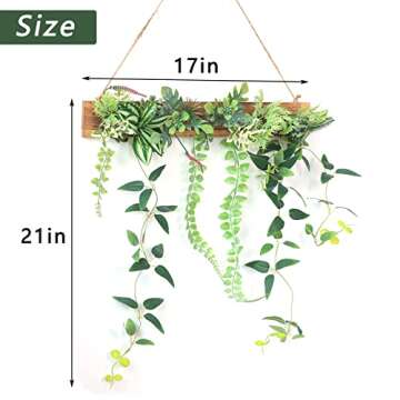 Show more Add a breath of fresh air to your living spaces with the exquisite FOTEEWL Artificial Plants and Wooden Boards Wall Hanging Decor. This eye-catching decor piece is not just an aesthetic addition to your home, but it also embodies the ideal blend of nature and artistry. The faux leaf green fake vines are carefully crafted to mimic the authentic texture of greenery, bringing vibrant and lush vibes without the hassle of upkeep. Suitable for any occasion, this versatile decor fits seamlessly into a boho-themed bathroom, brightens up bedrooms, and lends a rustic charm to kitchens and nurseries alike. The addition of wooden boards further enhances the natural feel, inviting warmth and a sense of tranquility to your home.
