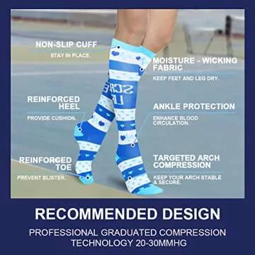 - GRADUATED COMPRESSION FOR PROFESSION: A compression range of 20-30mmHg provides targeted support, particularly at the ankle, gradually decreasing along the leg for optimal comfort.