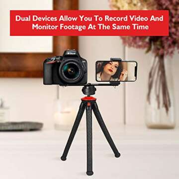 Fotopro Flexible Phone Tripod, Camera Tripod with Dual 1/4" Screw & Bluetooth Remote Control & Smartphone Mount for iPhone, DSLR, Samsung, Huawei UFO Plus