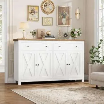 FOTOSOK Sideboard Buffet Cabinet with Storage, 55" Large Kitchen Storage Cabinet with 2 Drawers and 4 Doors, Wood Coffee Bar Cabinet Buffet Table Console Cabinet for Kitchen Dining Room, White