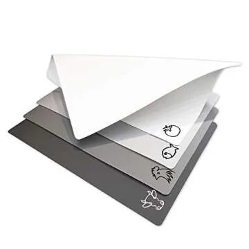 Fotouzy Flexible Plastic Cutting Board Mats with Food Icons, BPA-Free, Non-Porous, 100% Non-slip Back and Dishwasher Safe, Unique Modern Neutral Colors, Set of 4