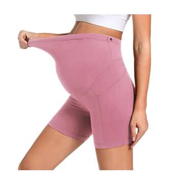 Foucome Women's Maternity Biker Shorts Stretchy Yoga Shorts Over the Belly 5" Workout Running Athletic Shorts Pants (Lilac Pink, Large)