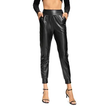 Foucome Women's Elegant Faux Leather Pants - Casual Trousers (Black, M)