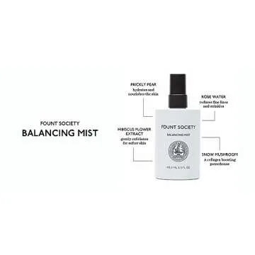 Show moreIntroducing the Fount Society Balancing Face Mist, a luxurious skincare essential designed to elevate your beauty routine and provide unparalleled hydration. With its unique blend of plant and fungi extracts, including rosewater, prickly pear, and snow mushrooms, this mist goes beyond mere hydration to deliver a refreshing boost that calms irritation and redness, leaving your skin perfectly balanced. Made in the USA, this formula is crafted with a commitment to purity, ensuring it's free from harmful toxins and animal-derived ingredients.