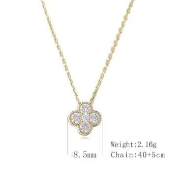 Four Leaf 18K Gold Lucky Clover Necklace for Women, OUXi 925 Sterling Silver Crystal Diamond Pendant Rhinestone Necklaces Cubic Zirconia Chains, Anniversary Birthday Jewelry Gift for Mother Teen Girls
