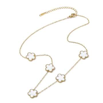 Four Leaf Clover Necklace for Women - 14K Gold Plated Stainless Steel Chain