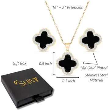 Show moreIntroducing the stunning Four Leaf Crystal Clover Necklace Earring Set, a perfect blend of charm and elegance designed for those who appreciate the beauty of understated jewelry. This exquisite set includes a delicately crafted necklace and matching earrings, both featuring a timeless four-leaf clover design. Each piece reflects the essence of hope, faith, love, and luck, allowing you to carry a touch of positive energy wherever you go. With its luxurious 18K gold plating, this jewelry set is not just an accessory but a statement of style that complements any outfit.