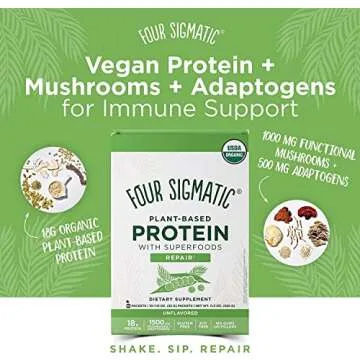 Four Sigmatic Superfood Protein Organic Plant-Based Protein with Chaga Mushroom & Ashwagandha | Supports Immune Function & Muscle Repair | Portable | Unflavored | 10 Count