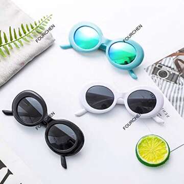 FOURCHEN Kids Sunglasses, Bold Retro Oval Mod Thick Frame, Round Lens, 100% UV Proof for Girls/Boys, Toddler & Kids