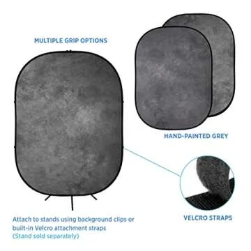 Fovitec Hand Painted Double Sided Gray Tie-Dye Muslin Pop-Up Backdrop 5'x6.5' for Headshot and Portrait Photography, Vlogging and Video Conferencing