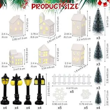 Fovths 39 Pieces LED Lighted Ceramic Winter Village Building Figurines and Accessories Desktop Ornament Set for Holiday Party Decor