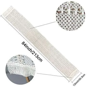 Show moreTransform your dining experience with the exquisite Fowecelt Macrame Table Runner, measuring an elegant 12 x 84 inches. This beautifully designed runner combines modern bohemian flair with rustic charm, making it the perfect addition for both intimate gatherings and grand celebrations. Made from 100% natural cotton, this table runner showcases intricate crochet lace details and delightful tassels at the ends, epitomizing the shabby chic aesthetic. Ideal for your dining table or as a decorative piece on your coffee table, its versatility allows it to seamlessly fit into various decor styles.