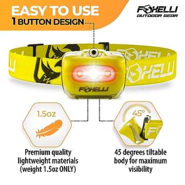 Foxelli LED Headlamp Flashlight for Adults & Kids, Running, Camping, Hiking Head Lamp with White & Red Light, Comfortable Headband, Lightweight & Waterproof, 3 AAA Batteries