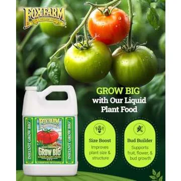 Show more Transform your gardening experience with our revolutionary liquid plant food that promises healthier, larger plants. Specially formulated for vegetative growth, this fertilizer not only enriches soil but also significantly boosts your plants' size and structure, resulting in a bountiful harvest of flowers, fruits, and vegetables. Our product is meticulously crafted by Fox Farms, a name trusted by gardening enthusiasts for years. Grow Big is more than just plant food; it’s your partner in achieving gardening success.