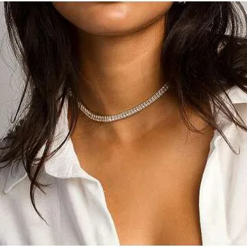 Foxgirl Gold Necklace: Dainty Sparkling Tennis Chain Choker with Cubic Zirconia - Perfect Jewelry Gift for Women