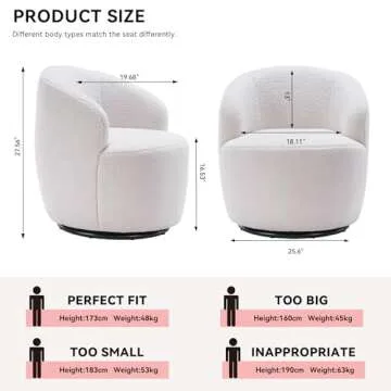 Show more Introducing the epitome of comfort and style—the perfect addition to your home decor! This luxurious swiveling accent chair enhances your living space with its premium teddy fur upholstery, designed to provide an inviting and cozy atmosphere. The high-density padded foam filling offers an unmatched seating experience that is delightfully soft and incredibly plush, making it ideal for leisurely lounging. With an ergonomic design, this chair promotes proper body alignment, allowing you to relax without the usual strain on your back.