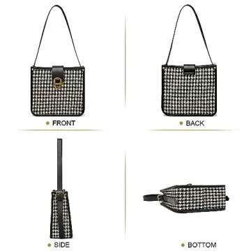 FOXLOVER Houndstooth Fabric Shoulder Bag for Women Top Handle Bucket Purse Casual Retro Portable Adjustable Straps(Black)
