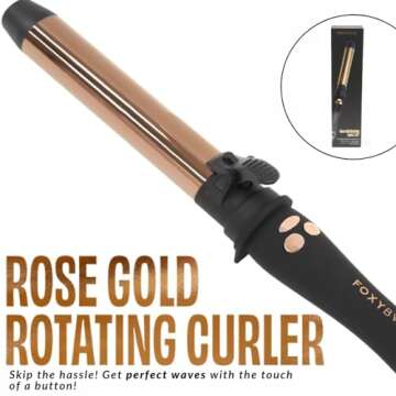 FoxyBae Titanium Rotating Curling Iron - 1.25”/32mm Automatic Hair Curler Wand - Professional Hot Tools W/Temp Control - Locks in Moisture for Soft Curls - Self Curling Hair Curler Iron