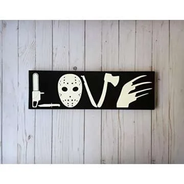 Show moreTransform your space into a spine-chilling haven with the Fprqlyze Horror Movie Sign. Measuring a perfect 12 inches by 4 inches, this wooden sign captures the essence of your favorite horror films, bringing a touch of nostalgia and eerie charm to any corner of your home. Made from high-quality wood, the sign features an elegant black finish that seamlessly blends with various decor styles while making a bold statement. The retro design evokes feelings of classic horror, making it ideal for fans who seek to express their love for the genre.