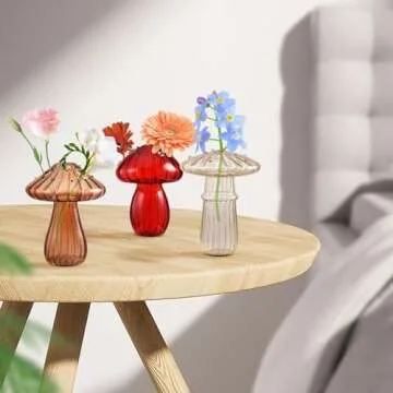 The set includes four distinct mushroom vases, each in vibrant colors and designs, measuring 12 x 9 cm (4.7 x 3.5 inches). This variety allows you to mix and match according to your decor style, be it modern, rustic, or eclectic. Their exquisite workmanship and high transparency ensure that the lovely plants or succulents you choose to display will stand out beautifully, creating a harmonious atmosphere in your living space.