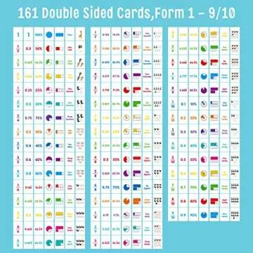 Constructed with a practical double-sided learning design, the flip chart boasts a total of 161 vibrant cards rich in educational content, including fractions, decimals, and percentages. This vast array of information fosters an enriched classroom environment where visual learning can flourish. The freestanding design enables the chart to easily stand on desks or tables, ensuring that students have full visibility during lessons.