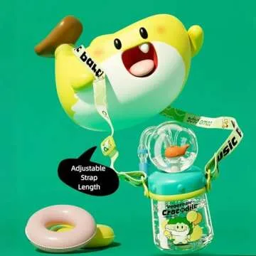 FRAGRANTGARDEN Drinking Cup With Whale Squirt, Weighted Sippy Cups With Adjustable Straps, 300ml Whale Water Cups With Silicone Soft Tip, Portable Leak Proof Straw Sippy Cup For Kids (A-Green)