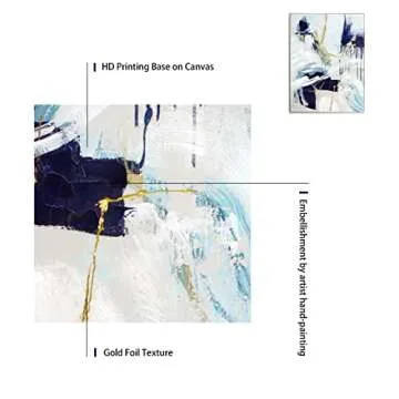 Framed Abstract Wall Art with Gold-foil - Navy Blue Graffiti on Light Background Canvas Artwork Decor with Hand Texture for Living room, Bedroom, office,Ready to hang