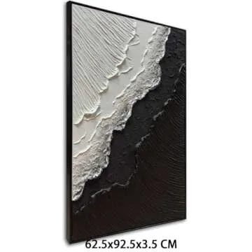 Framed Black and White Ocean Wave Wall Art, Modern Abstract Textured Paintings on Canvas, Relief Wall Art for Living Room Bedroom Wall Decor