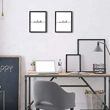 Show more Introduce calmness and positivity into your space with our **Framed Inhale Exhale Art Print Set of 2**. These stunning prints not only enhance your décor but also serve as daily reminders to breathe deeply and find peace in the chaos of life. Each print measures **10" x 8"** and comes neatly framed in a sleek black wooden frame, ready for effortless hanging. Made from high-quality canvas, these modern Zen art pieces are designed to inspire meditation and promote mental wellness, making them a perfect accessory for any room in your home, office, or gym.
