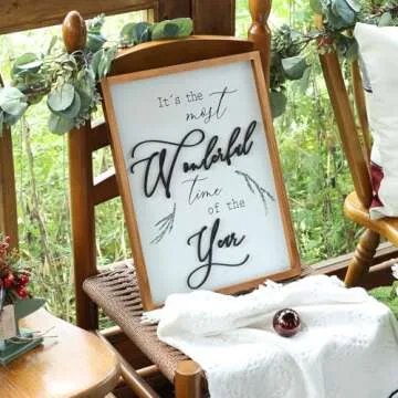 Framed It's The Most Wonderful Time of The Year Wall Decor Farmhouse Christmas Wall Art 3D XMAS Holiday Decor 12x16 Inch Brown