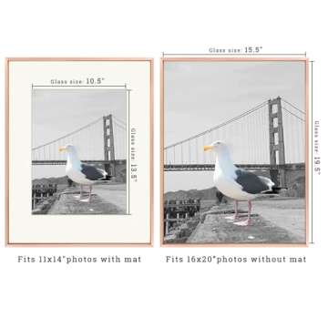 Frametory, 16x20 Metal Picture Frame with Mat for 11x14 Picture & Real Glass, Aluminum Photo Frame Collection (Rose Gold, 1 Pack)