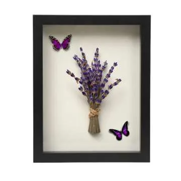 FrameWorks 8” x 10” Black Wooden Shadow Box Frame – Display Case with Soft Felt Back, Memory Box with Tempered Glass, Display Box with Elegant White Ball Push Pins, Wooden Flower Box