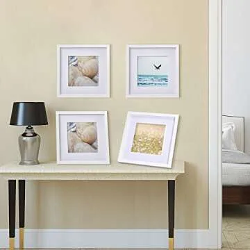 Show moreTransform your living space and showcase your precious memories with the FRAMICS 12x12 Picture Frame Set. This exquisite collection of picture frames is not just a decorative accessory; it’s an expression of your personal style and a means to preserve your favorite moments for years to come. Made from durable solid wood, the frames boast a charming white finish that effortlessly fits into any decor theme, making them ideal for homes, public spaces like coffee shops, or art galleries. Each frame comes with a clear plexiglass cover that protects your artwork from dust and scratches while providing a crystal-clear view, ensuring your displayed memories shine brightly. Designed to hold 8x8 inch photos with the included matting or 12x12 inch photos without, they offer versatility to curate your unique wall art display.