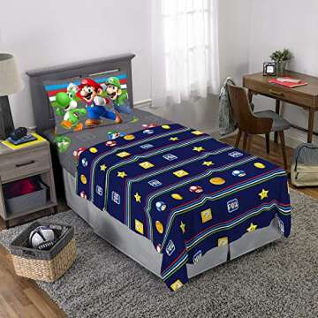 Show moreTransform your child’s bedroom into a thrilling and colorful retreat with the Franco Kids Bedding Super Soft Sheet Set. Designed with vibrant illustrations of iconic Nintendo characters Mario, Luigi, and Yoshi, this sheet set is not just functional but also brings a playful spirit to bedtime. Crafted from high-quality microfiber, this set ensures exceptional softness and durability, making it perfect for both nighttime snuggles and daytime adventures. Your little gamer will love drifting off to sleep surrounded by their favorite heroes, making every night a fun experience!