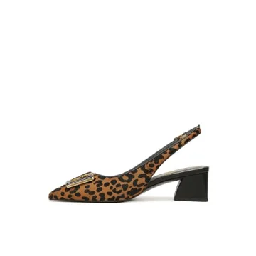 Franco Sarto Womens Racer Slingback Low Block Heel Pointed Toe Pump with Leopard Print