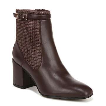 Show moreIntroducing the Franco Sarto Women's Tribute Bootie – where classic elegance meets contemporary style. Designed in a chic dark brown multi-tone, these heeled ankle boots are a staple for anyone looking to elevate their wardrobe. Crafted with a premium synthetic leather and fabric upper, these booties perfectly blend functionality and fashion. The unique square toe design not only adds a modern twist but ensures a comfortable fit that caters to the slim silhouette of your foot.