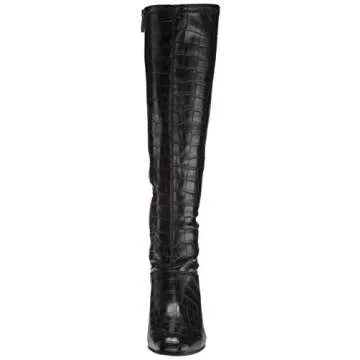 Franco Sarto Womens Tribute Knee High Heeled Boot Black Stretch Croco 8 M