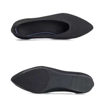 Frank Mully Womens Pointed Toe Flats Knit Dress Shoes Comfort Women Shoes Slip On Shoes for Woman Classic Softable Shoes Low Wedge Black Solid, 8.5