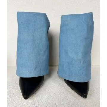 Frankie Hsu Unisex Stiletto High Heeled Shark Pant Bootie, Blue Denim Classic Fashion Pumps Style, Big Large US4-14 Size Ankle Boots For Women Men