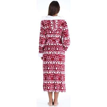 Frankie & Johnny Women's Fleece Robe Sherpa-Lined Hooded Bathrobe, Cranberry Winter (FJ1447-1052-MED)