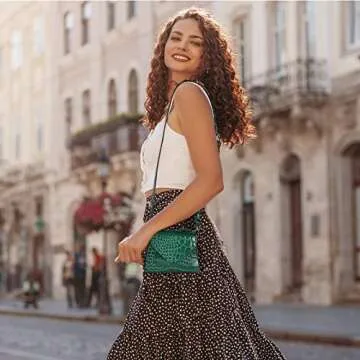 This exquisite bag is crafted from high-quality vegan leather featuring a unique crocodile pattern, providing a dazzling visual appeal that sets it apart from traditional bags. Its eye-catching aesthetics enhance your outfit, adding a touch of elegance while ensuring practicality. The solid color options move seamlessly with the curves of the purse, making it a versatile choice for various occasions.