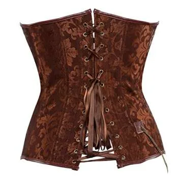 Show moreDiscover the ultimate fusion of elegance and allure with the frawirshau Steampunk Brown Corset Top, crafted for those who love to blend historical charm with modern-day style. This stunning corset is not just an outfit; it’s an experience that empowers you to embrace your unique curves and express your personality. Made with exquisite floral lace and featuring a lace-up back, this corset beautifully sculpts the waist, achieving that coveted hourglass figure. Designed with plastic boning for optimal support and structure, every detail ensures you not only look fabulous but feel confident as well.