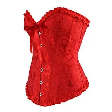 Frawirshau Women's Lace Up Boned Overbust Corset Bustier Bodyshaper Top - Red S