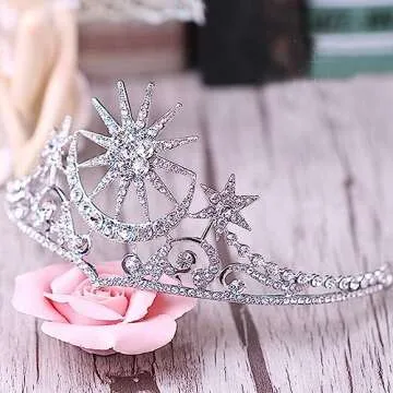 FRCOLOR Star Crown Rhinestone Moon Tiara Headband for Women and Girls